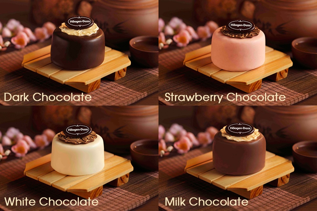 Đến với không gian ấm cúng sang trọng của Häagen-Dazs, khách hàng sẽ có dịp thưởng thức 4 loại bánh với vị 4 kem khác nhau được bao phủ bởi các loại lớp vỏ sôcôla tươi, với phần đế bánh làm bằng lớp hạnh nhân giòn tan. Ngoài ra, nhân bánh bên trong còn có một chiếc trứng hột vịt muối được làm từ kem Sorbet xoài với vị chua thanh, giúp thực khách cảm nhận sự hòa quyện thật tao nhã giữa vị ngọt và vị chua trong cùng một chiếc bánh.
