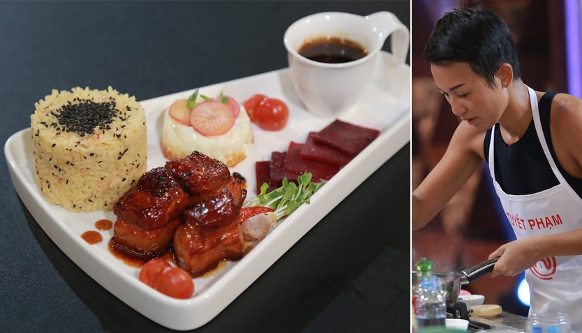 | Đây là tập thi bứt phá của nữ hướng dẫn viên du lịch. Món Thịt kho nước dừa và mật ong của cô đã khiến giám khảo Alain Nguyễn tấm tắc: “màu rất đẹp, miếng thịt và mỡ vẫn còn độ giòn. Nước sốt với cơm rất hợp. Em làm món này xuất sắc”. |