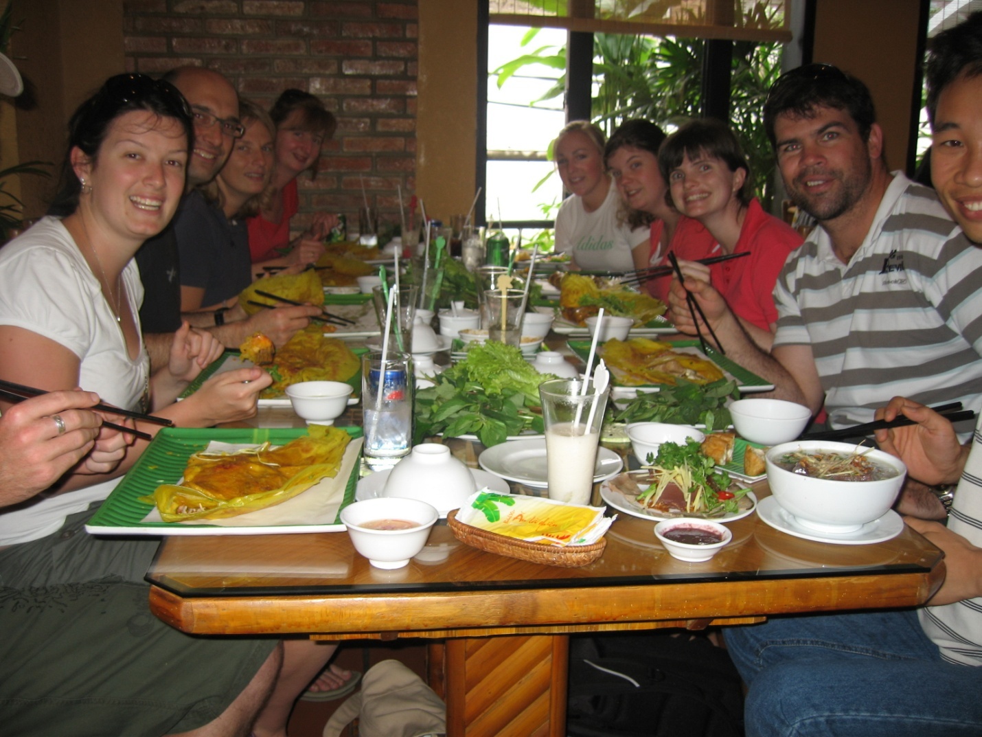 | Du khách thích thú với bánh xèo Ăn Là Ghiền. |