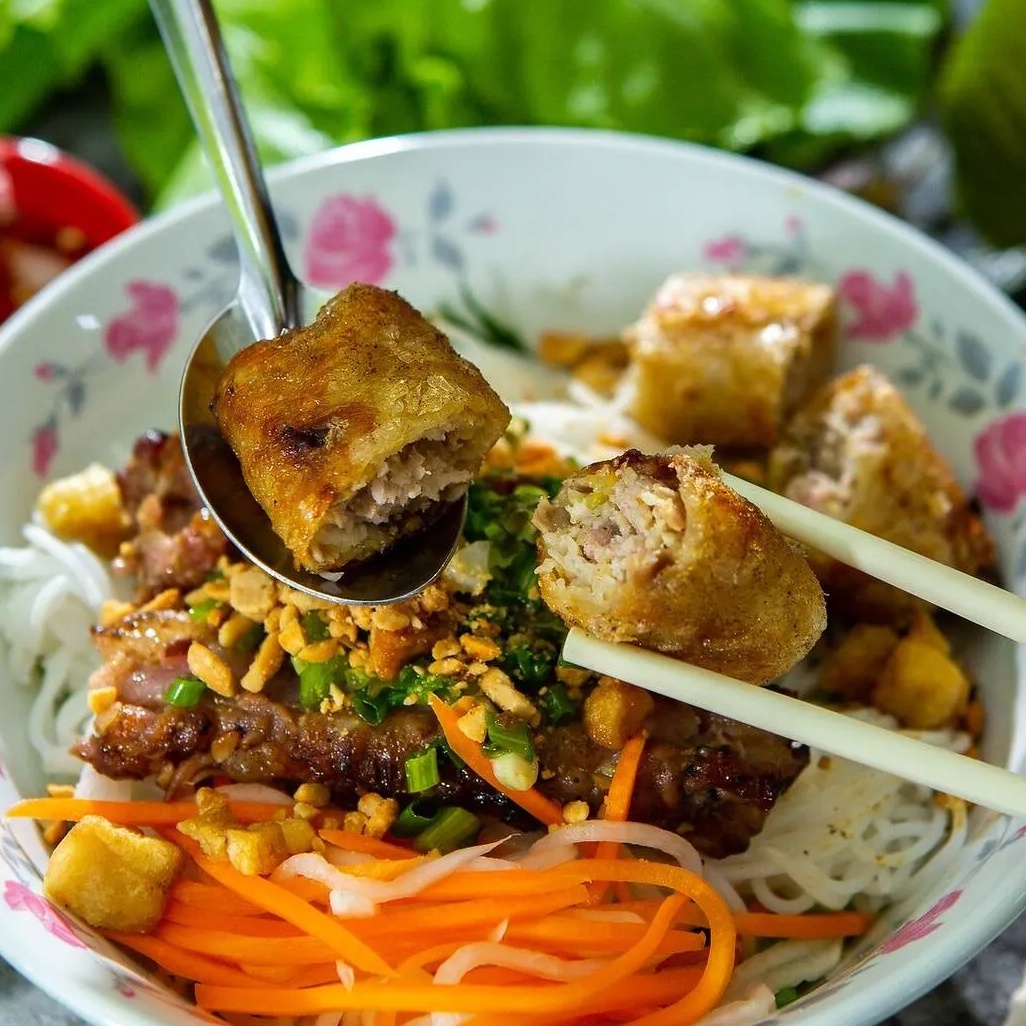 Quán nhỏ này dành hơn 30 năm chỉ để làm bún thịt nướng. Bún lạnh ăn với thịt heo nướng, chả giò, rau thơm và dưa chua. Nhờ tập trung vào từng chi tiết, món ăn quen thuộc trở thành trải nghiệm chạm ngưỡng tuyệt đỉnh.