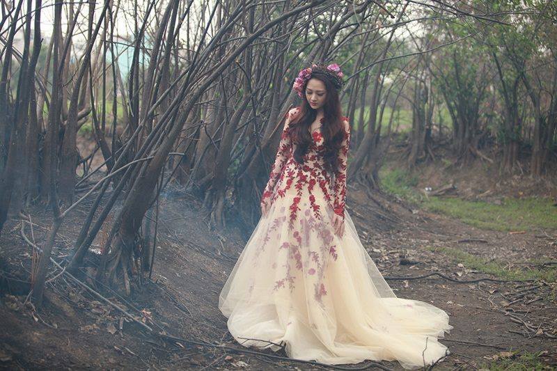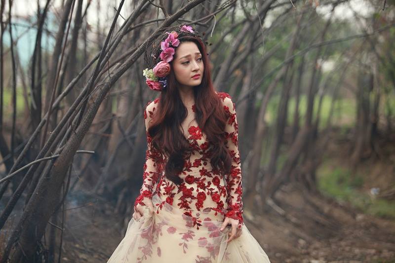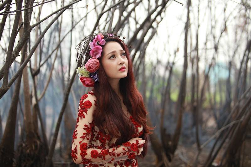 | Một trong những phân cảnh đặc sắc và đẹp nhất của MV Mình yêu nhau bao lâu là những cảnh quay trong rừng. Bảo Anh xuất hiện như một nàng công chúa xinh đẹp và lộng lẫy. |