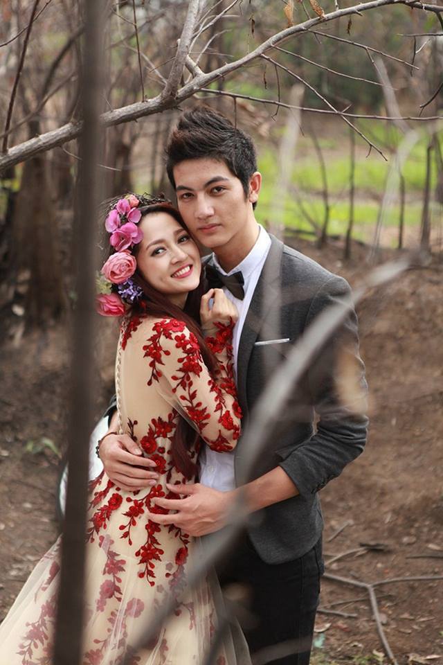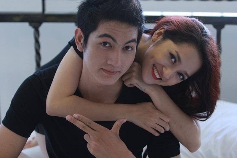 | Cô thân thiết với người mẫu Quốc Huy sau khi thực hiện chung MV. |