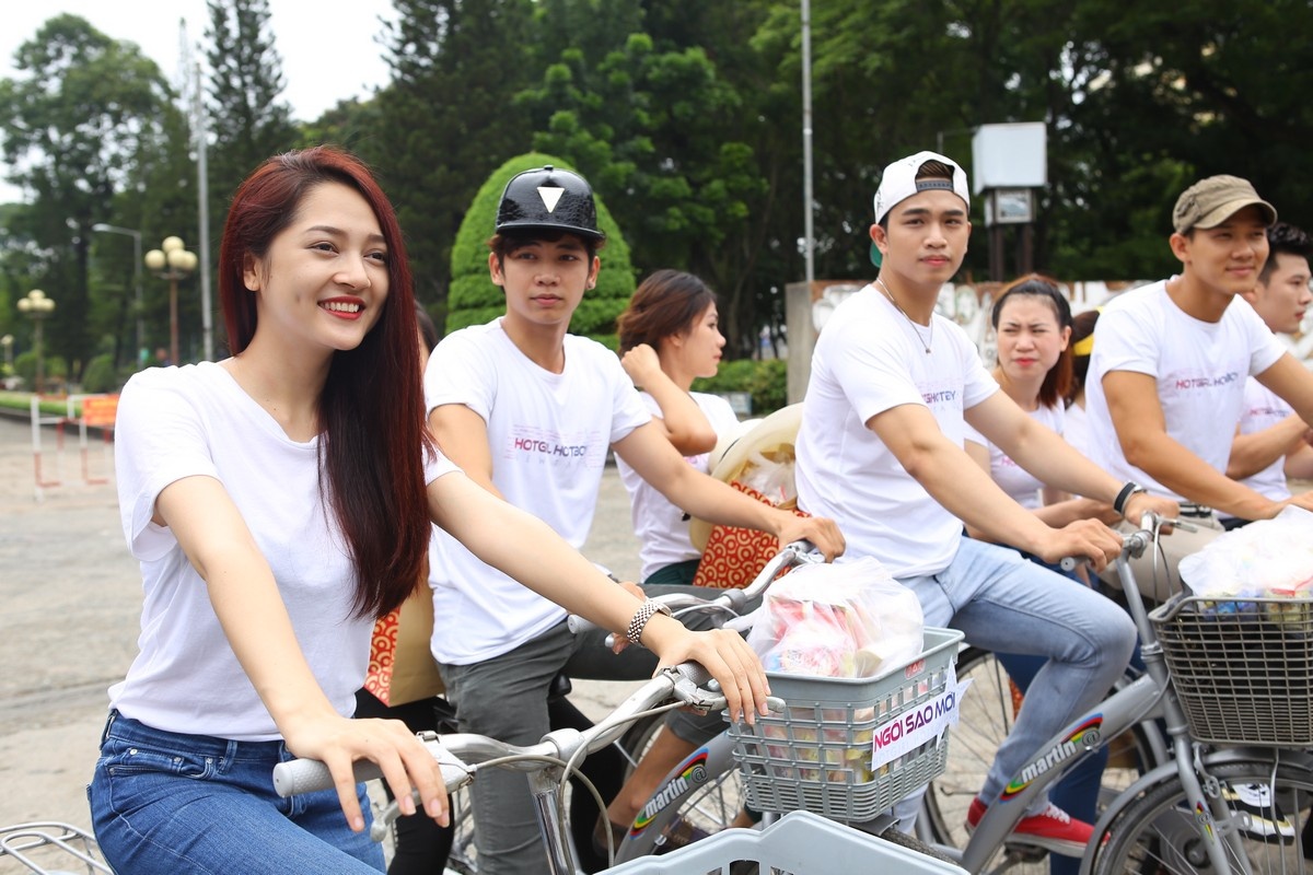Họ đã không ngại khó khăn, mệt mỏi để cùng các bạn thí sinh đạp xe đến thăm hỏi và trao tận tay những phần quà do chính tay các bạn cùng nhau chuẩn bị cho những bệnh nhân tại Bệnh viện Ung bướu TP.HCM.