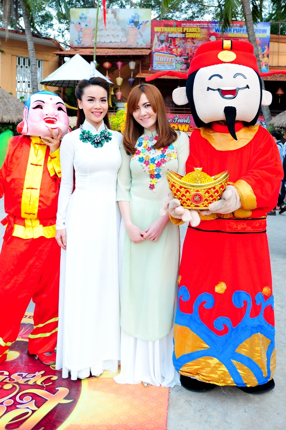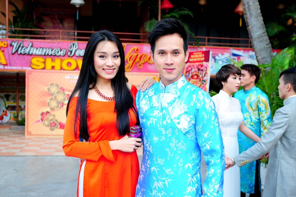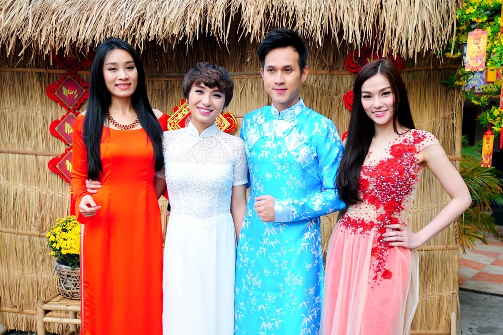 | Để hòa cùng chủ đề của chương trình cũng như không khí của những ngày đầu năm, các nghệ sĩ đã chọn cho mình những bộ áo dài đẹp nhất nhất. Thu Thủy đang tất bật với lịch luyện tập của Bước nhảy hoàn vũ vẫn dành thời gian đến chung vui cùng mọi người. |