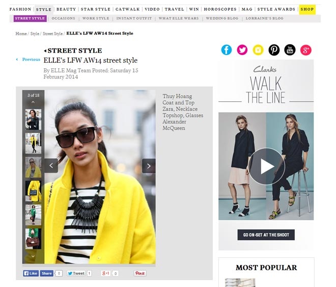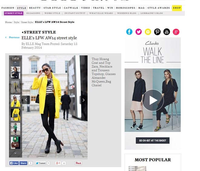 | Hình ảnh của cô trên trang street style của Elle nước Anh. |