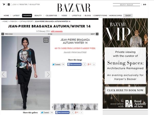 | Ngay sau show diễn ngày 14/12 của nhà thiết kế Jean-Piere Braganza, không chỉ báo chí trong nước mà nhiều tạp chí thời trang danh tiếng của nước ngoài như Bazaar, Voque, Style... đã đồng loạt đăng tải thông tin và hình ảnh về show diễn. Trong đó, hình ảnh Hoàng Thùy là người mẫu châu Á với gương mặt góc cạnh và sự tự tin trong mỗi bước catwalk đã nhận được sự chú ý của mọi người. |