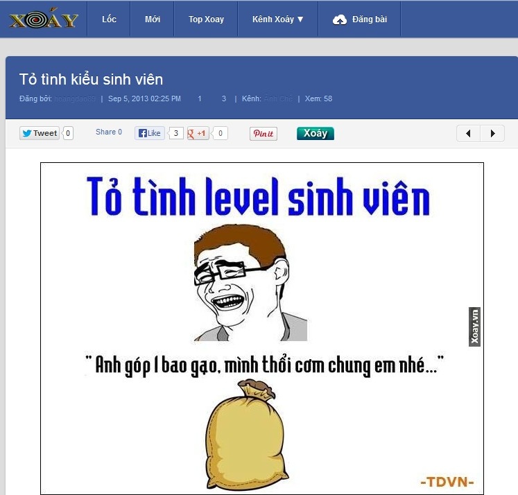 Mạng xã hội trong thời gian gần đây đã trở thành một môi trường thuận lợi cho những trào lưu mới xuất hiện. Bao gạo - với ý nghĩa dí dỏm và châm biếm nhưng cũng mang đầy tính giải trí sẽ mang đến nhiều niềm vui cho giới trẻ trong thời gian sắp tới. Hiện cư dân mạng đang tìm kiếm xuất phát điểm của bao gạo xung quanh từ khóa “tdvn” vì thấy xuất hiện trên nguồn post của những hình ảnh chế này.