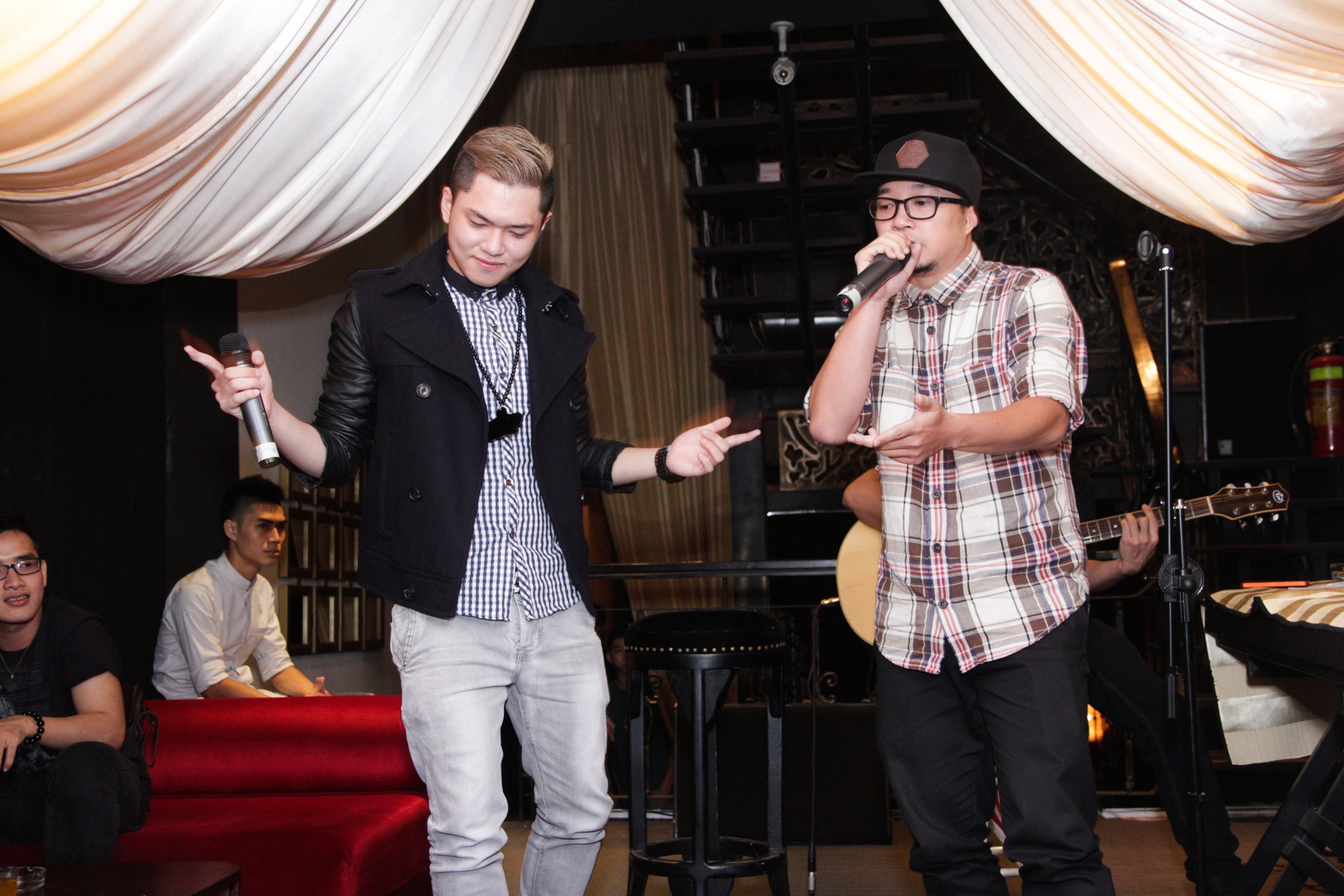 Nhạc sĩ - ca sĩ Phúc Bồ - thành viên nhóm FB Boiz là người sẽ nâng đỡ Bảo Kun trong sự nghiệp ca hát. Tối 13/7, đàn anh đã đến từ rất sớm để giúp cậu em chuẩn bị tất cả mọi thứ cho buổi gặp gỡ người hâm mộ.