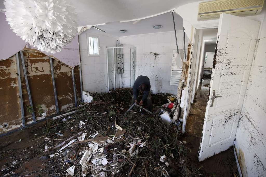 Một người đàn ông dọn dẹp đống đổ nát sau trận lụt ở vùng Biot, miền nam nước Pháp hôm 4/10. Ảnh: EPA |