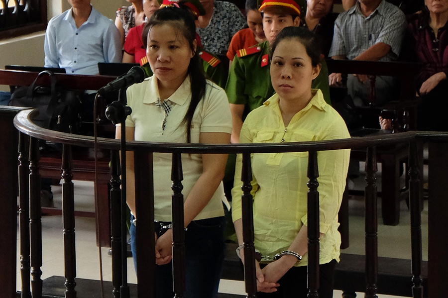 | Bị cáo Trang (bên phải) và Nguyệt tại tòa. Ảnh: MĐ. |