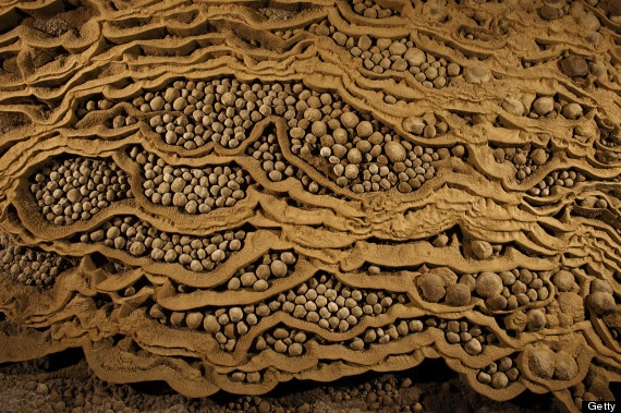 | Quá trình nhỏ giọt của nước tạo nên vô số những viên đá hình tròn trong hang. Rất ít hang sở hữu những viên đá độc đáo như thế này. Ảnh: Getty Image. |