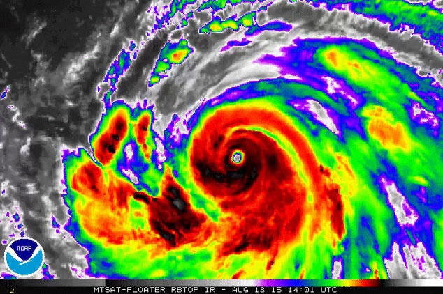 Vệ tinh thời tiết của Cục quản lý đại dương và khí quyển quốc gia Mỹ (NOAA) chụp hình bão Atsani trong ngày 18/8. |