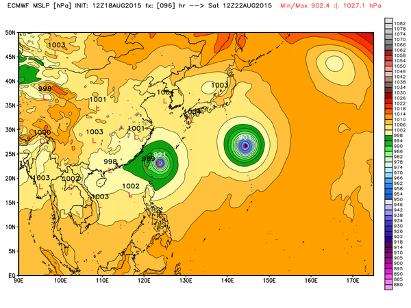 Theo dự báo, tâm bão Goni sẽ tới gần Đài Loan vào ngày 23/8. Nó đổ bộ chỉ 2 tuần sau khi Soudelor, cơn bão nhiệt đới mạnh nhất năm 2015 quét qua hòn đảo này rồi đổ bộ vào Trung Quốc đại lục. Trong khi đó, bão Atsani đang ngày càng mạnh lên nhưng chưa thể xác định chắc chắn hướng đi của nó. |