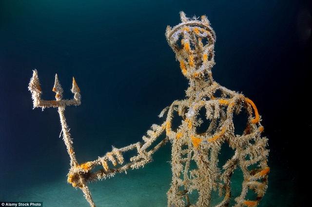 Vị thần biển Neptune trong thần thoại Hy Lạp đang cầm đinh ba đầy quyền lực . |