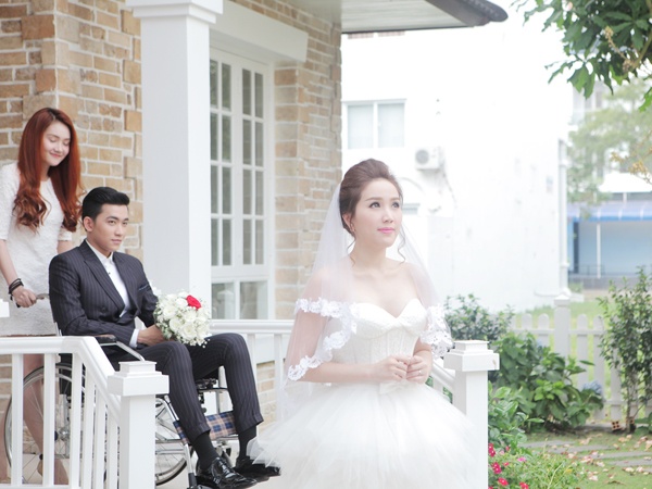 Ở cuối MV, Bảo Thy trở thành cô dâu xinh đẹp, lộng lẫy trong chiếc váy cưới chủ động cầu hôn Võ Cảnh.