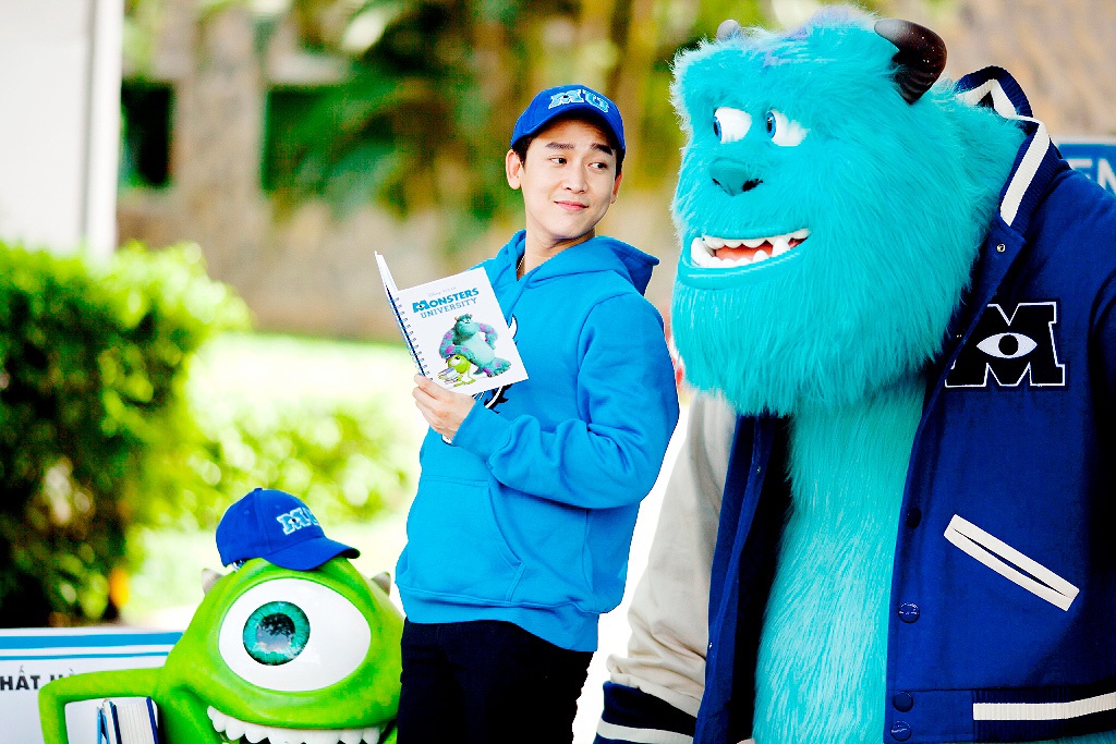 | Hứa Vĩ Văn cũng tham gia hành trình thăm lại trường cũ cùng các nhân vật trong Monsters University với Bảo Thy và nhiều đồng nghiệp khác như Đức Tuấn, Phương Vy... |
