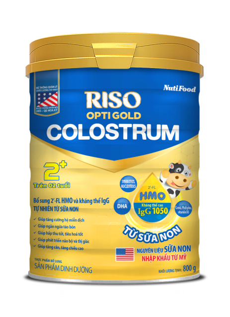Trong sản phẩm mới ra mắt - Riso Opti Gold Colostrum, NutiFood đã kết hợp HMO và kháng thể IgG tự nhiên từ sữa non nhập khẩu Mỹ. Trong khi nhiều hãng sữa chỉ bổ sung một trong hai thành phần (hoặc HMO hoặc IgG hàm lượng thấp hơn - IgG 1.000), thì Riso Opti Gold Colostrum bổ sung tới 2’-FL HMO và kháng thể IgG cao (IgG 1.050) cùng hệ synbiotics (prebiotics & probiotics), nucleotides và vitamin nhóm B.