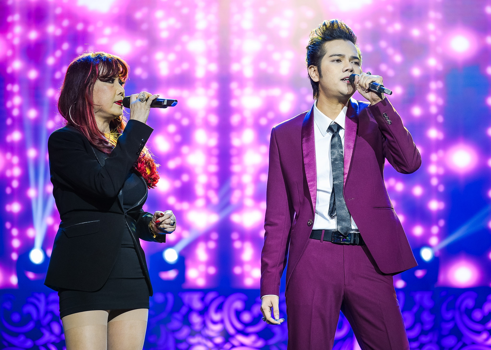 Phi Nhung bắt nhịp với đàn em Phú Quý trong ca khúc Nối lại tình xưa. Sự trẻ trung, tươi mới của nam ca sĩ mang màu sắc riêng khi thể hiện bản hit nổi tiếng. |
