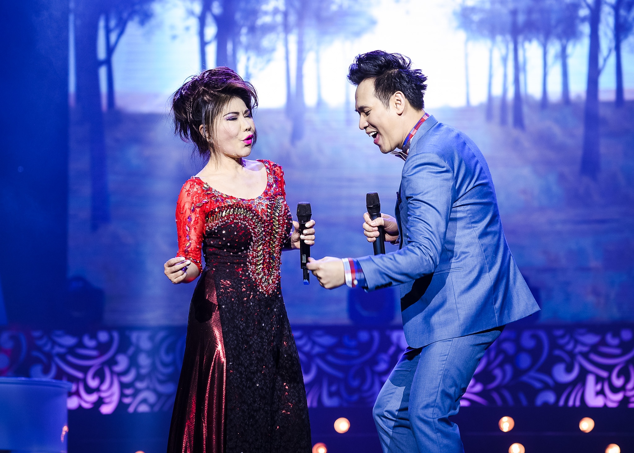 Thái Châu song ca tình cảm với Phi Nhung trong ca khúc Giọt lệ tình. Sự ăn ý của cả 2 giúp họ có những khoảnh khắc thăng hoa trong đêm nhạc. |