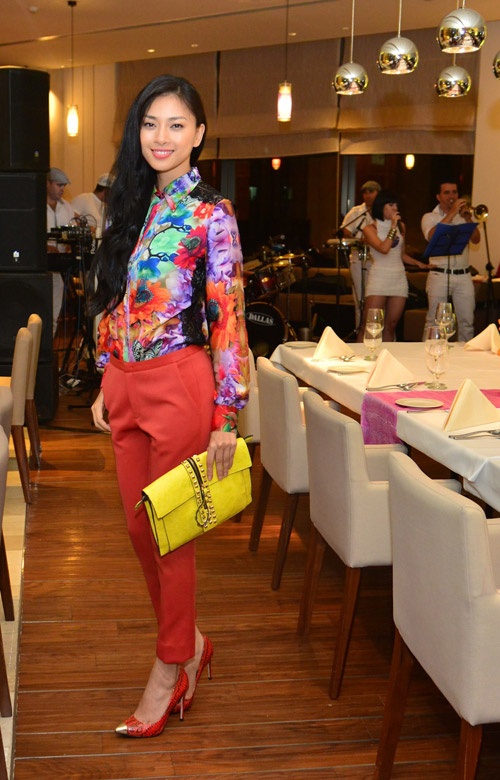 Một nhân vật vốn ít khi gắn liền với những gì rực rỡ như Vân Ngô bất chợt tỏa sáng với những tông màu bắt mắt, đặc biệt điểm nhấn với áo hoa loang đã giúp cho bộ trang phục bình thường trở nên nổi bật trong một sự kiện.