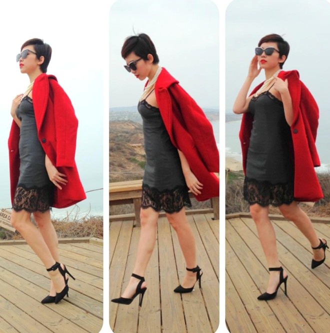 Thời điểm trào lưu diện váy ngủ nở rộ trên thế giới, Tóc Tiên cũng là một trong số những sao Việt dẫn đầu trào lưu này. Nữ ca sĩ gợi cảm gây chú ý khi đăng tải hình ảnh cô diện bộ đầm tối màu, đính đăng ten đậm hơi hướm váy ngủ thả bộ trên những con phố hiện đại ở Mỹ. Hình ảnh này chứng minh cho câu nói: ''Không có giới hạn và quy luật cho phong cách và xu hướng thời trang''. Tóc Tiên đã rất tinh tế khi diện váy ngủ cùng áo măng tô mùa đông, giày cao gót, phụ kiện chuỗi hạt và tông trang điểm quyến rũ, hình ảnh người mặc toát lên vẻ kiêu sa và cuốn hút.