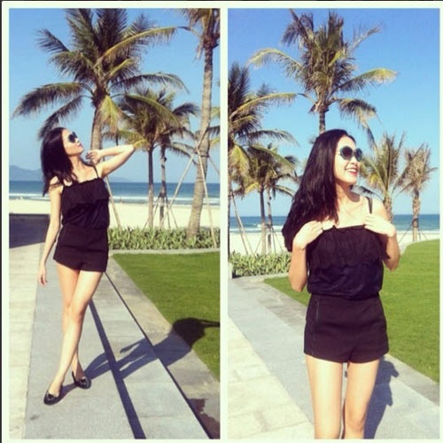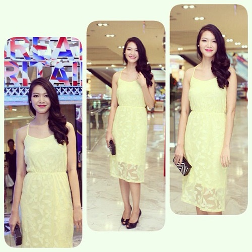 | Thùy Dung trung thành với mốt áo hai dây trong suốt một năm qua. |
