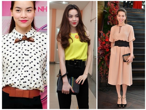 Là người khá cầu toàn, từng chi tiết nhỏ phối cùng trang phục cũng được Nữ hoàng giải trí quan tâm. Trong nhiều set đồ, cô chú trọng đến phụ kiện hoa tai, giày, túi, thắt lưng… mix rất đồng bộ về đường nét và sắc màu, đôi khi phụ kiện là điểm nhấn tạo sự cuốn hút cho tổng thể. Theo đúng các quy tắc mix đồ hợp xu hướng, Hà Hồ trở thành biểu tượng mặc đẹp của showbiz Việt nhờ những điểm nhấn cá tính đi kèm trang phục. Thắt lưng tạo điểm nhấn cho tổng thể sành điệu.