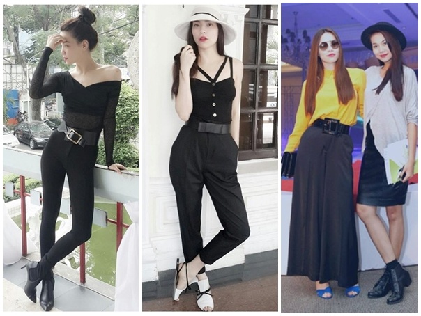 Không hài lòng với phong cách thanh lịch, cô còn biến hóa thắt lưng to bản với nhiều kiểu mốt cá tính.