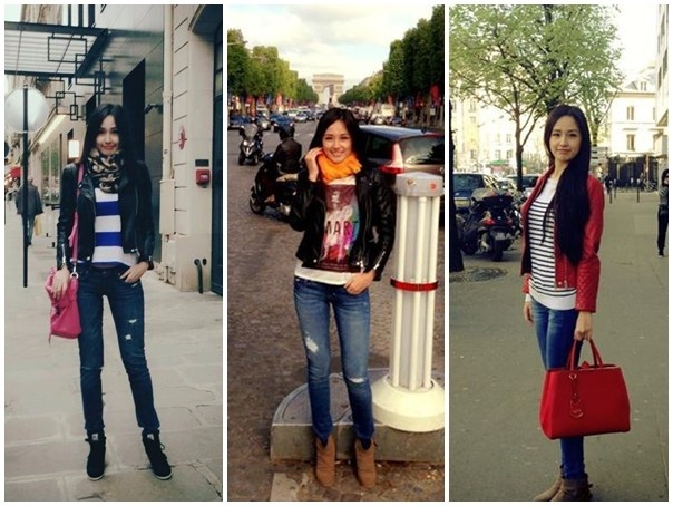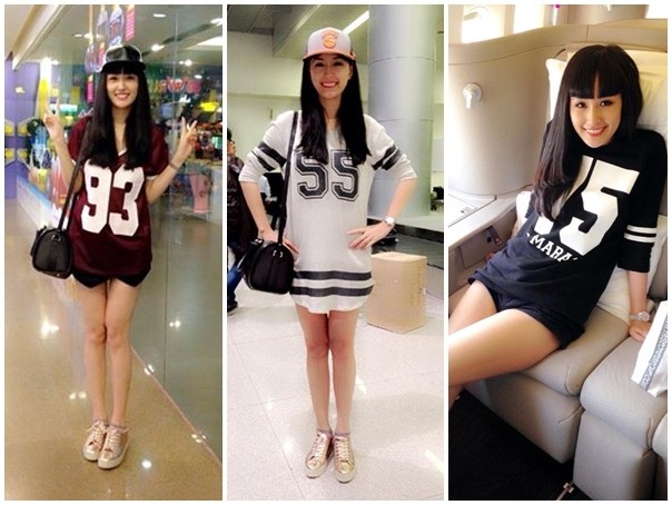 Đối lập với vẻ lộng lẫy, kiêu sa khi tham dự các sự kiện showbiz, Mai Phương Thúy ở đời thường là biểu tượng của sự đơn giản, không kiểu cách, cầu kỳ về trang phục dạo phố. Ngay cả khi công tác tại nước ngoài, Hoa hậu vẫn trung thành với cách diện áo thun cùng quần jeans đơn giản và dễ gần. Những chiếc áo thun năng động, hiện đại theo Mai Phương Thúy từ ngày cô chạm ngõ làng giải trí cho đến tận bây giờ. Kiểu áo thun mà người đẹp ưa chuộng được bày bán khá phổ biến với giá cả phải chăng, phù hợp với các tín đồ chuộng gu bình dân.