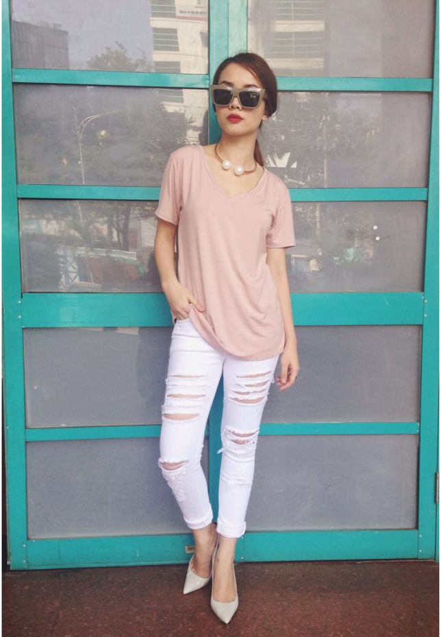 Cô tự tin xuống phố với cách phối đồ hiện đại, năng động.