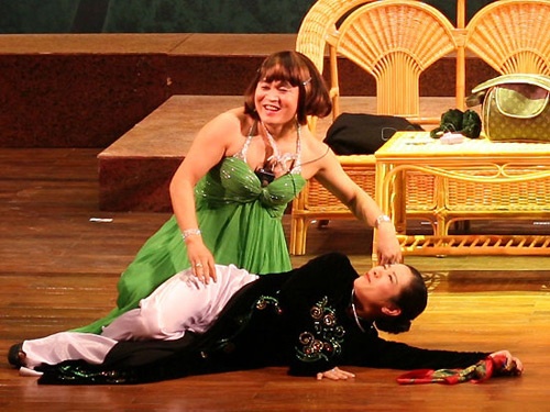 | Biểu cảm và diễn xuất tuyệt vời của Xuân Hinh càng làm cho hình ảnh giả gái thêm ấn tượng trong lòng khán giả. |