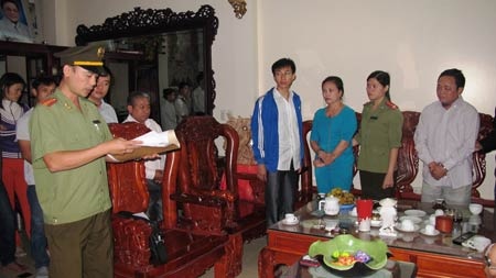 | Cơ quan An ninh điều tra Công an tỉnh Quảng Trị tống đạt quyết định khởi tố và bắt tạm giam 4 tháng đối với Thúy và Duyên. |