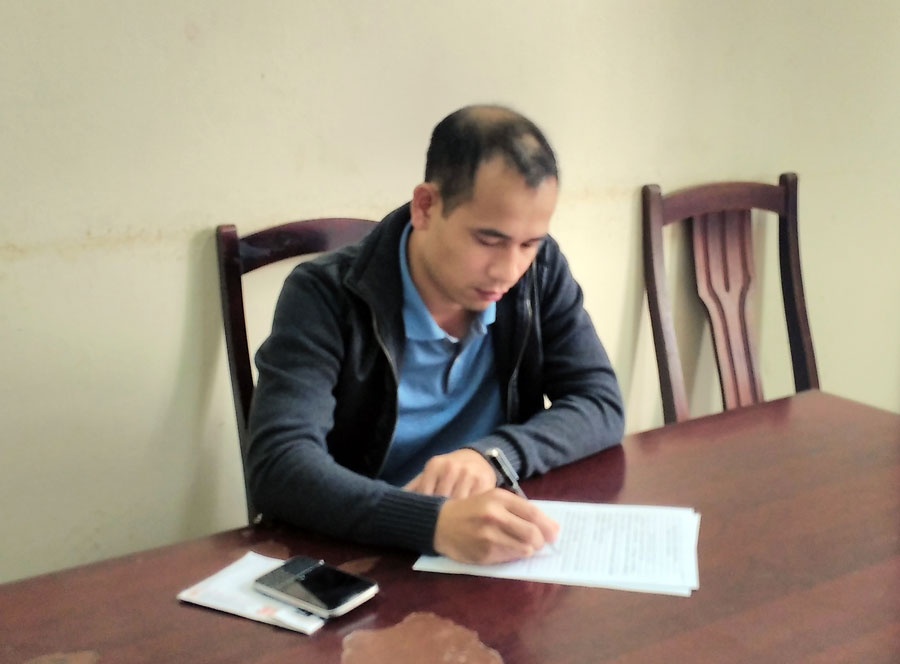 | Trần Quang Tuấn tại cơ quan điều tra. Ảnh: Y.H. |