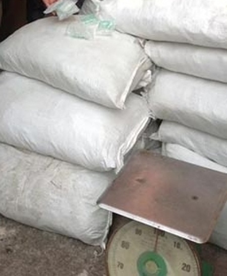 | Các lọ thuốc được giấu trong bao tải. |