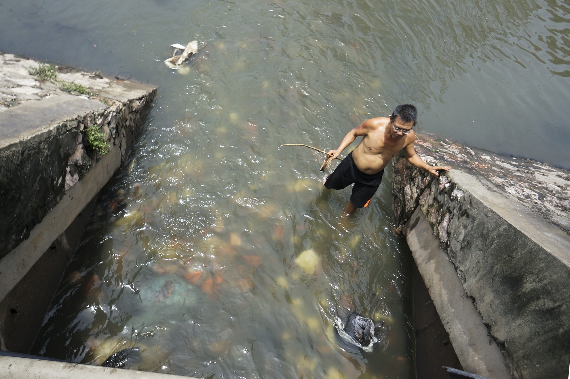 Nơi nhiều cá nhất là đường ống cống ngầm thoát nước thải ra sông Kim Ngưu, gần phố Thanh Nhàn.