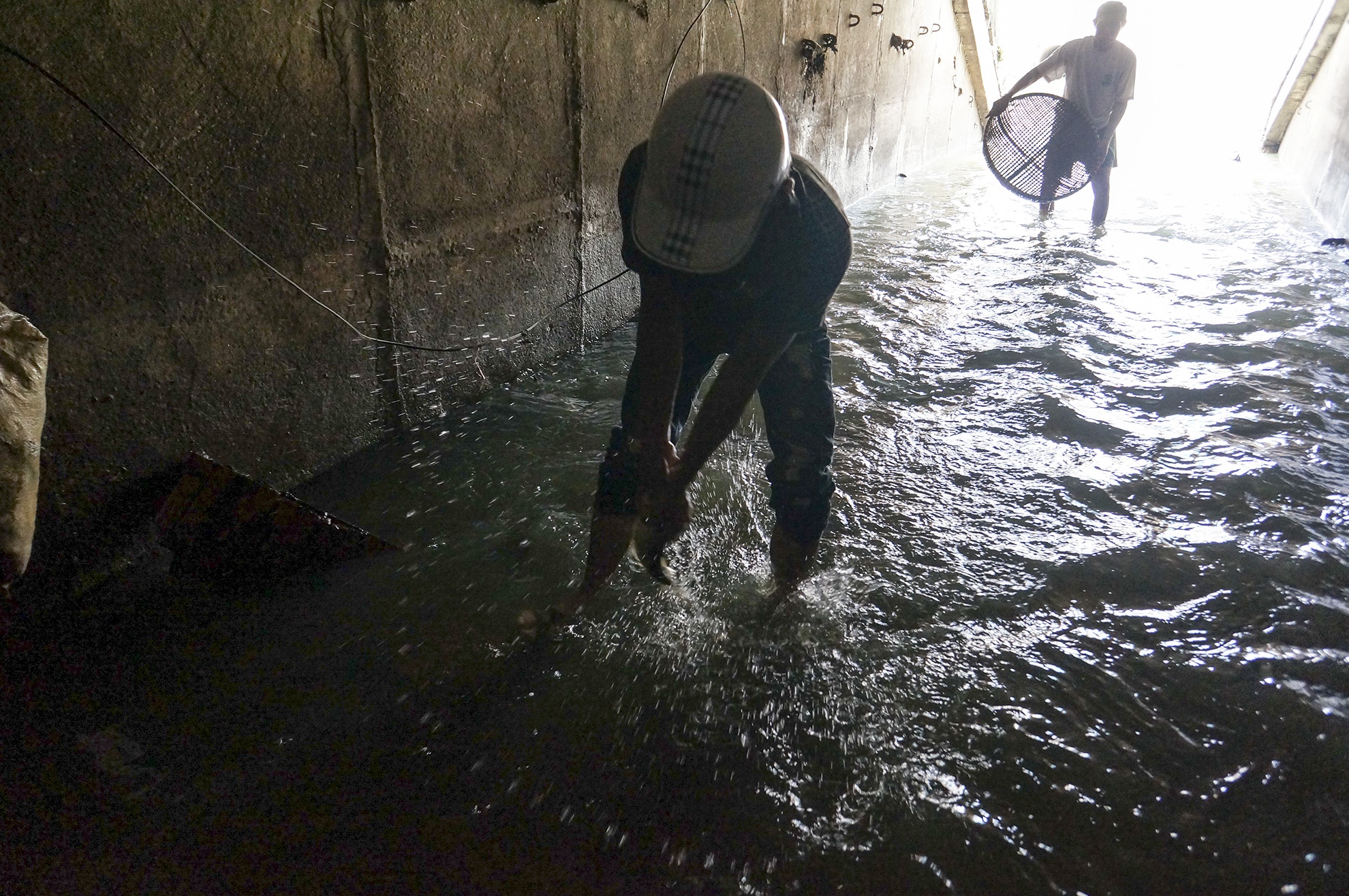 Bắt hàng trăm con cá dưới cống sau mưa bão