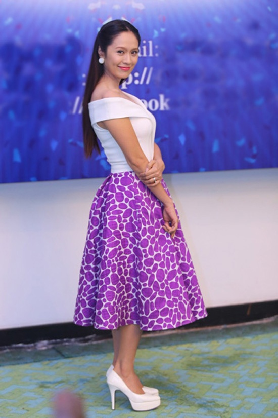 | Gương mặt Việt Trinh đẹp nhưng trang phục luôn luôn sến và xấu. Đáng chê nhất trong set đồ này là chiếc vòng cổ tim giống đồ chơi bán trên phố. |