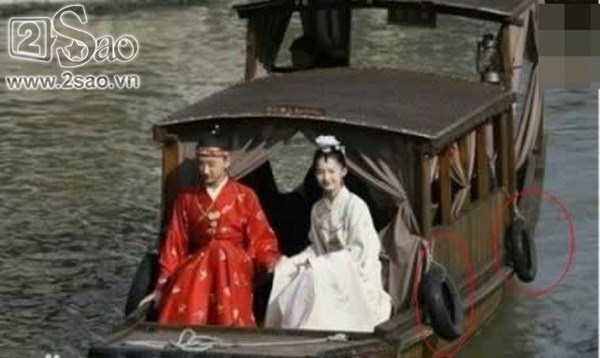 | Tân Hồng lâu mộng là phim cổ trang nhưng trên thuyền lại treo lốp xe thời hiện đại. |
