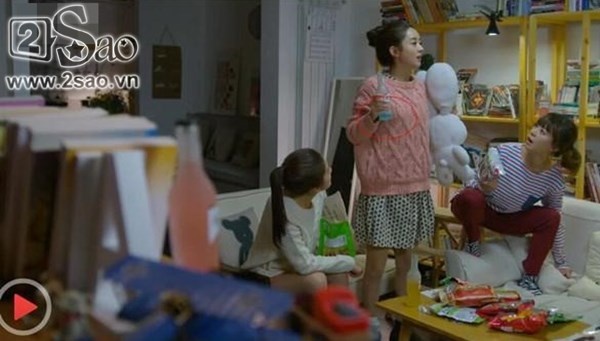 | Chỉ trong chớp mắt, chai nước trên tay Sam Sam (Triệu Lệ Dĩnh) vơi đi đáng kể. |