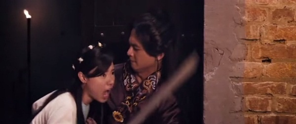 | Nguyên Vũ (Huỳnh Đông đóng) ôm nàng nữ hiệp khóc ngất khiến khán giả tưởng cô đã chết. |