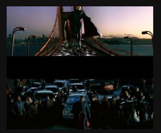 X-Men: The Last Stand (2006): Khi Magneto (Ian McKellen đóng) hạ cánh xuống Cầu Cổng Vàng, bầu trời vẫn còn sáng rõ. Tuy nhiên, ở một vài bức ảnh tiếp theo ngay sau đó, vẫn tại chiếc cầu này, trời lại hoàn toàn tối đen. |