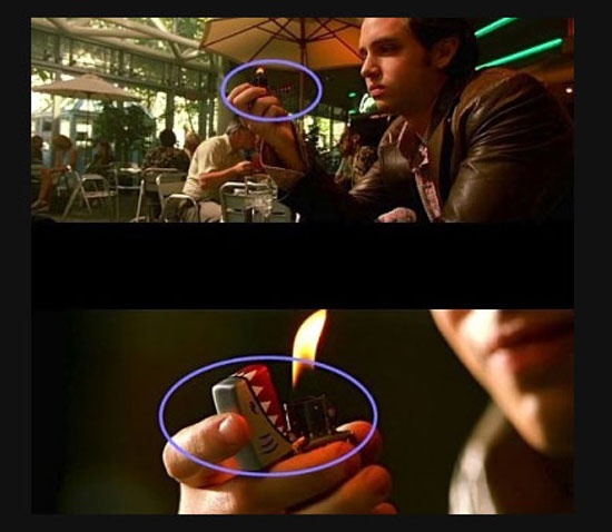 X2 (2003): Trong viện bảo tàng, khi Pyro(Aaron Stanford đóng) đang chơi với chiếc bật lửa, nắp chiếc bật lửa là miệng một con cá mập quay theo hướng ngược ra ngoài. Trong cảnh tiếp theo ngay sau đó, miệng cá mập lại quay về hướng đối diện với Pyro. |