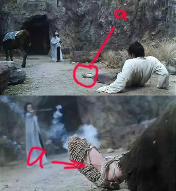 | Cùng một cảnh nhưng Chí Tôn Bảo mang 2 đôi giày khác nhau. |