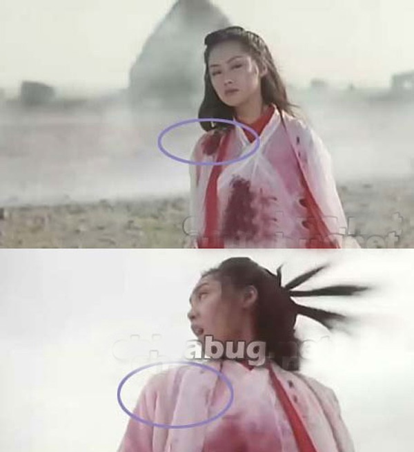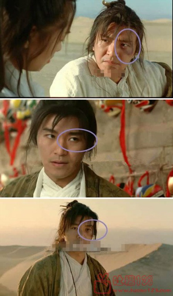 | Chí Tôn Bảo (Châu Tinh Trì đóng) bị Thanh Hà (Chu Ân đóng) đấm cho một cú khiến mắt trái bị bầm tím. Sau đó Chí Tôn Bảo cùng Tử Hà (cũng do Chu Ân đóng) xuống phố, vết bầm biến mất, đến khi trở lại sa mạc, con mắt lại bầm tím. |