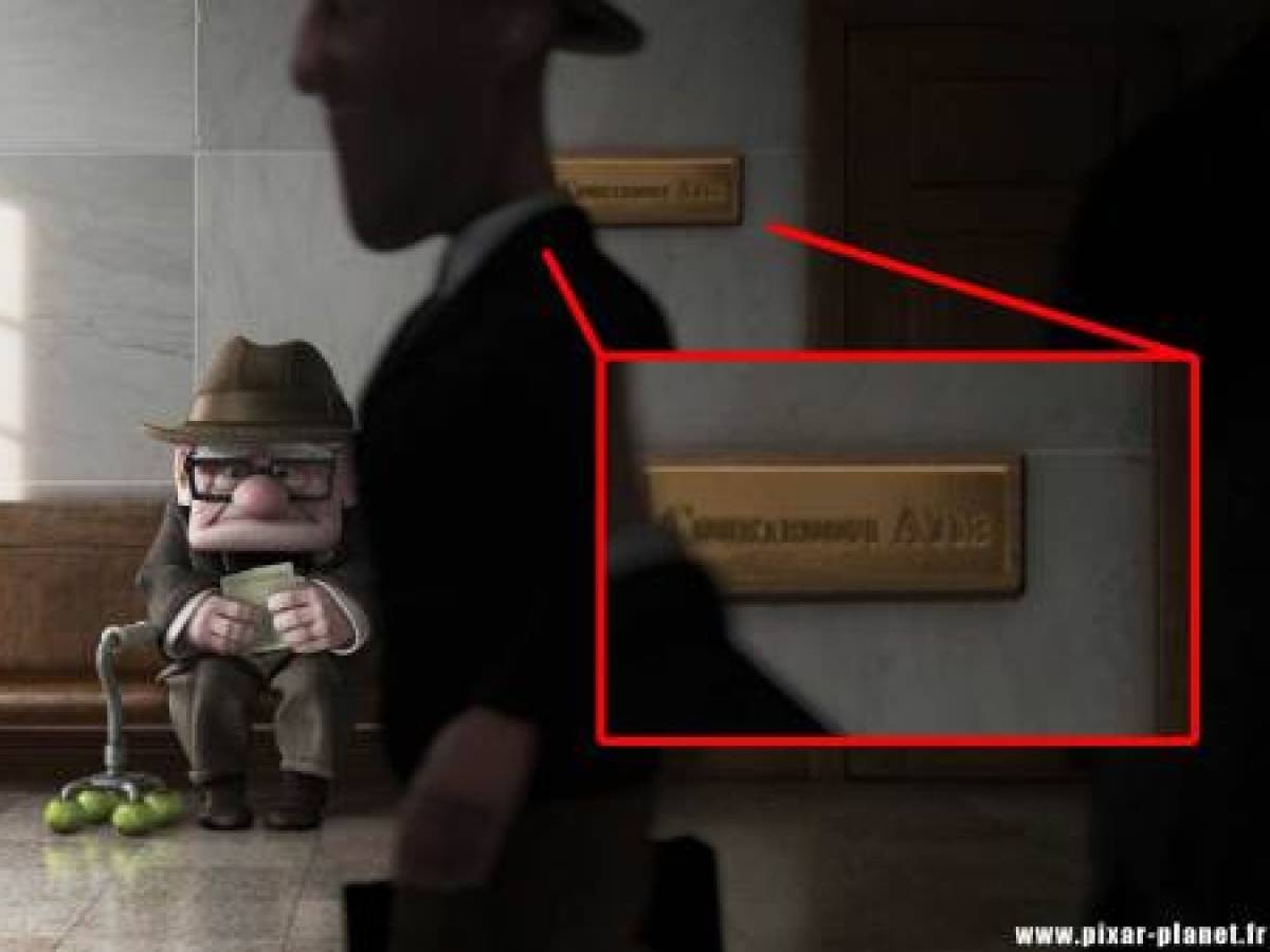 | Một cảnh quay ông lão Carl ngồi chờ bên ngoài căn phòng A113 không được nhiều người nhớ tới trong bộ phim Up. |