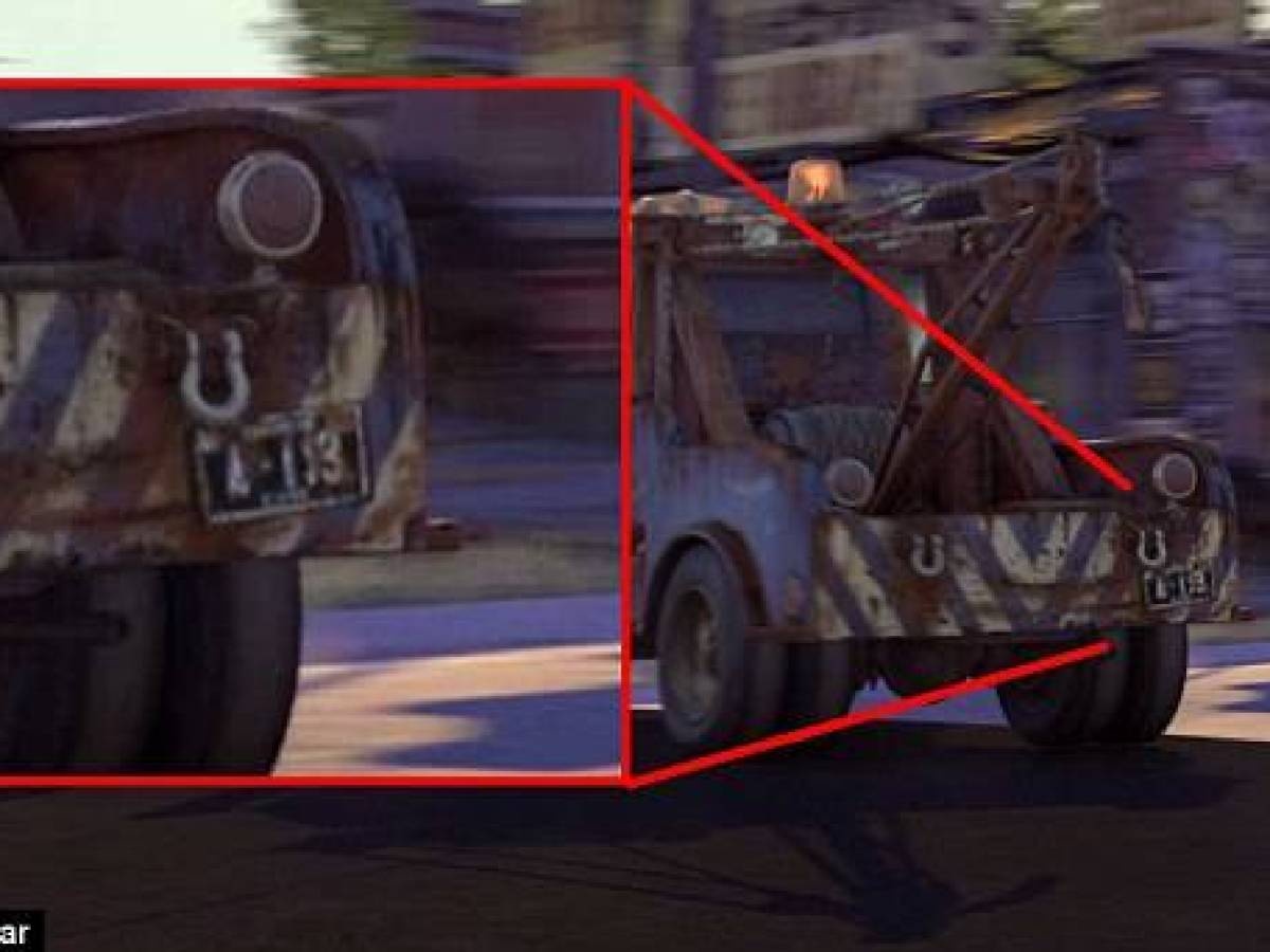 | Dù xuất hiện ở vị trí khá nhỏ và mờ nhưng người hâm mộ vẫn nhận ra chiếc biển số A113 trong bộ phim Cars. |