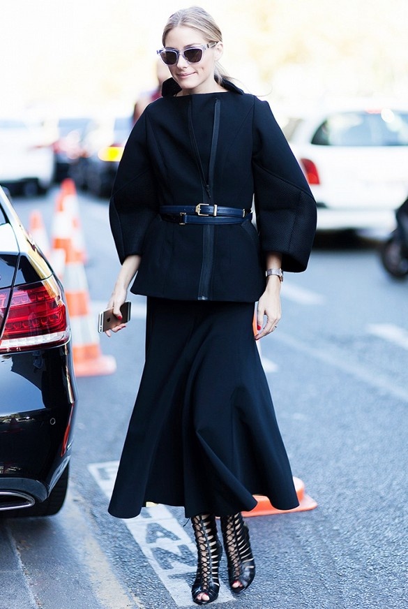 | Với các tín đồ thời trang thế giới, thắt lưng đen cũng là một món phụ kiện không thể thiếu để tôn thêm cá tính cho bộ trang phục. Olivia Palermo gây ấn tượng với mẫu thắt lưng mix kèm áo khoác rất sành điệu. |