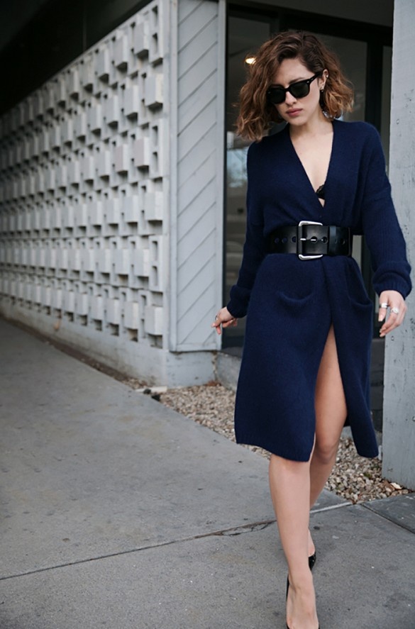 | Một gợi ý cho ngày đông với thắt lưng và áo len rất ấn tượng của fashionista. |
