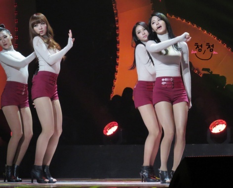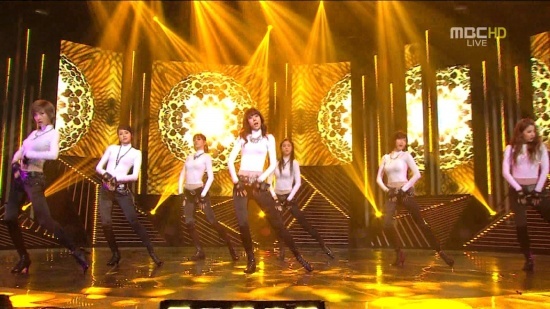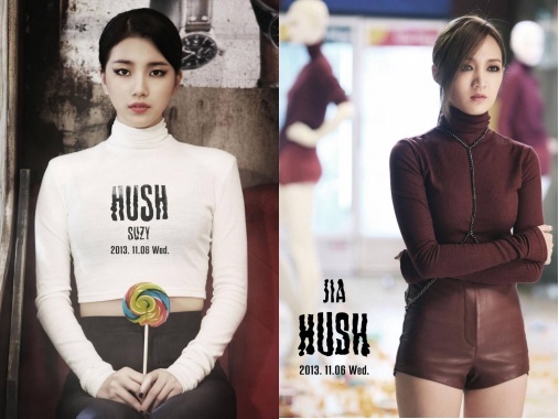 | Với những động tác vũ đạo “múa xà” đầy gợi cảm của Hush, việc lựa chọn chiếc áo thun dài tay bó sát kết hợp cùng quần da bóng đã giúp tăng thêm nét quyến rũ của 4 cô nàng Miss A lên rất nhiều lần. |