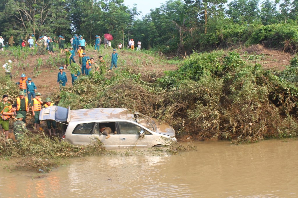 | Chiếc xe ôtô 7 chỗ do ông Thái điều khiển cùng thi thể 4 người bị nước cuốn trôi được phát hiện cách hiện trường khoảng 500 mét. |